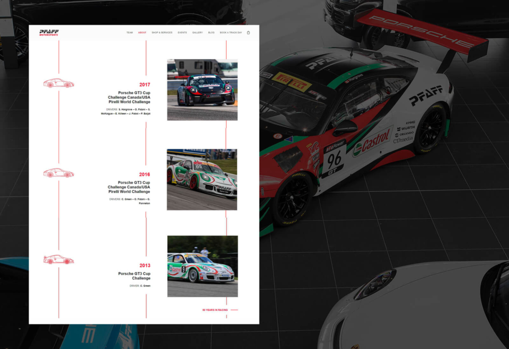 Abbiamo collaborato con Pfaff Motorsports per progettare e sviluppare il loro ecosistema digitale . Il nostro obiettivo era tradurre l’adrenalina, la precisione e il prestigio delle corse endurance in un’esperienza online fluida.